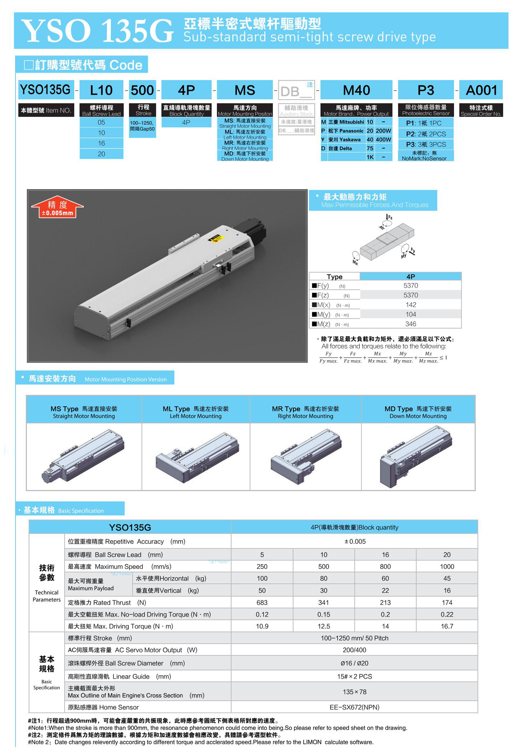 YSO135G亞標半密式螺桿驅動型
