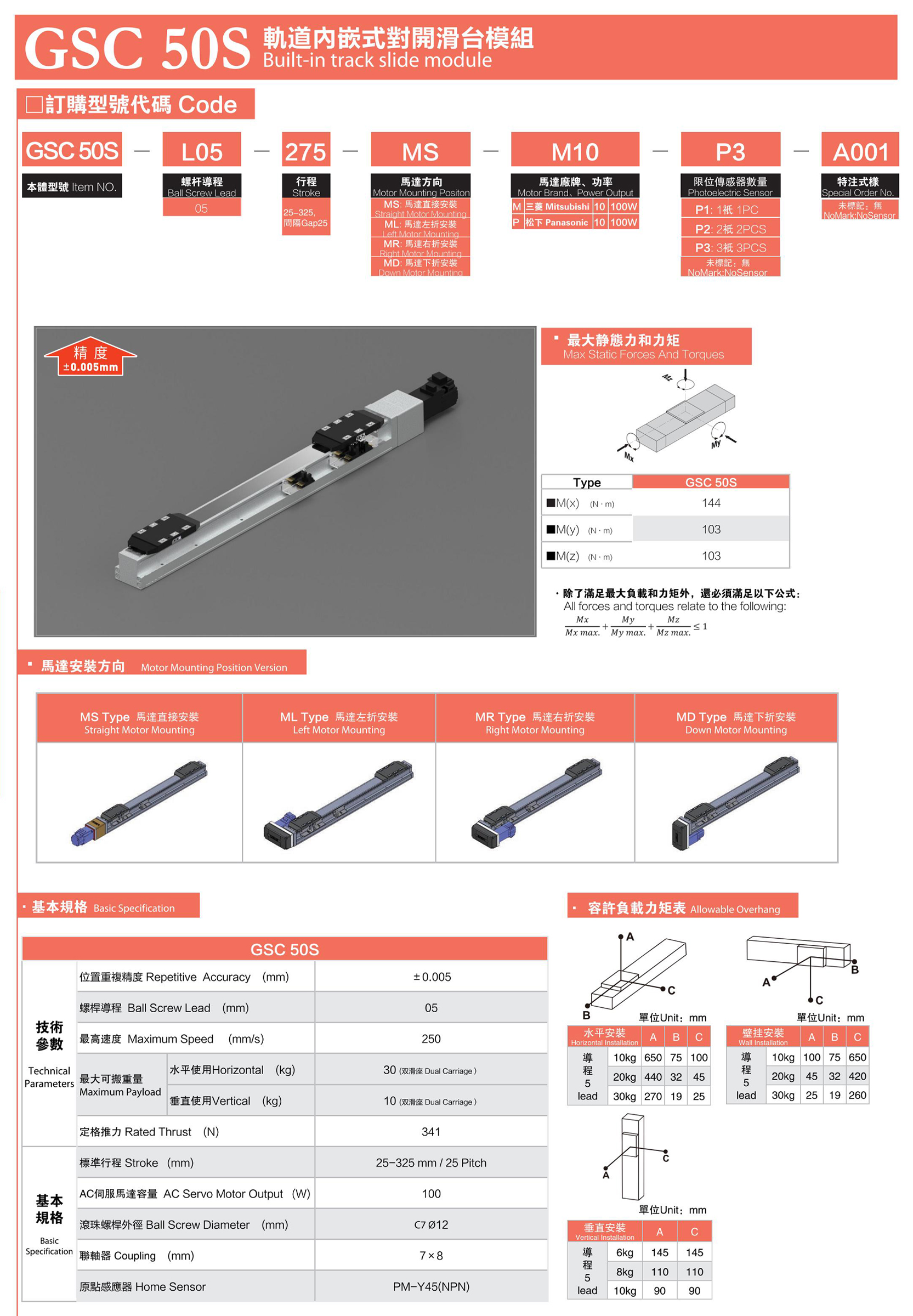 GSC50S內嵌式滑臺模組