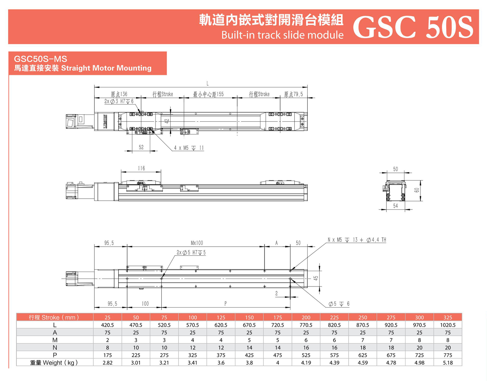 GSC50內嵌式滑臺模組